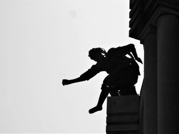Het gebouw dateert van 1994.De bronzen beelden zijn tussen de 3,5 tot 4 meter hoog.