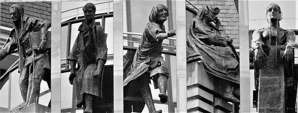 De beelden symboliseren 5 aspecten van van het Oost Vlaamse leven: