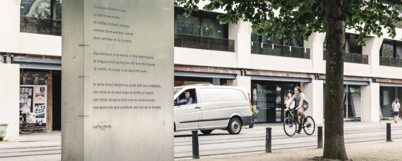 Naast de Mystic Leaves van kunstenares Jessica Diamond telt de Kouter nog een kunstwerk. Het gedicht ‘Zoals een blad dat valt’ van Lut De Block maakt al jaren deel uit van de Gentse poëzieroute en kreeg een plaatsje op de hoek van het plein.