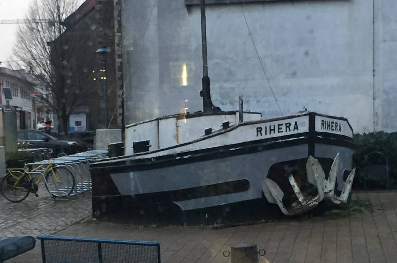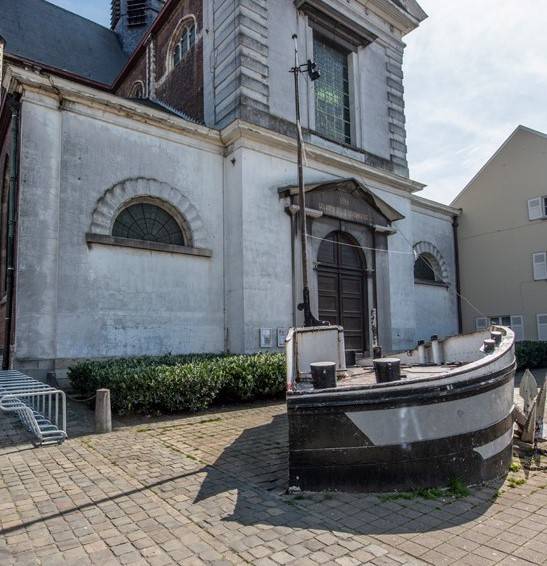 Sint-Salvator ligt in de onmiddellijke nabijheid van de voorhaven. Daardoor is het in de loop der jaren ook de parochiekerk van de Vlaamse binnenschippers geworden. Veel schippers trouwen in deze kerk, laten hier hun kinderen dopen en vormen en worden hier ook begraven. De vroegere café De Toren, op de hoek van het kerkplein en de Sleepstraat, was trouwens jarenlang een trefpunt voor de schippersgemeenschap. Naast het café was immers de schippersbeurs waar de transportopdrachten werden toegewezen. De band tussen de kerk en de schippersgemeenschap wordt gesymboliseerd door de boeg van de spits Rihera, een vrachtschip gebouwd in 1952, in opdracht van Richard Wijnakker gebouwd bij de nv Scheepswerven van Langerbrugge uit Gent, met afmetingen die precies passen in de Belgische en Franse sluizen en kanalen. De naam Rihera is een samentrekking van Richard-Hélène-Raoul, de voornamen van de schippersfamilie Wijnakker die eigenaar waren van het schip. Recent kreeg de scheepsboeg een grondige opknapbeurt en nu schittert ze terug in al haar glorie aan de kerk. “De inplanting aan de schipperskerk versterkt de symboliek. In deze kerk zijn heel wat binnenschippers in het huwelijksbootje gestapt”, zegt binnenschipper Hilaire Daes.