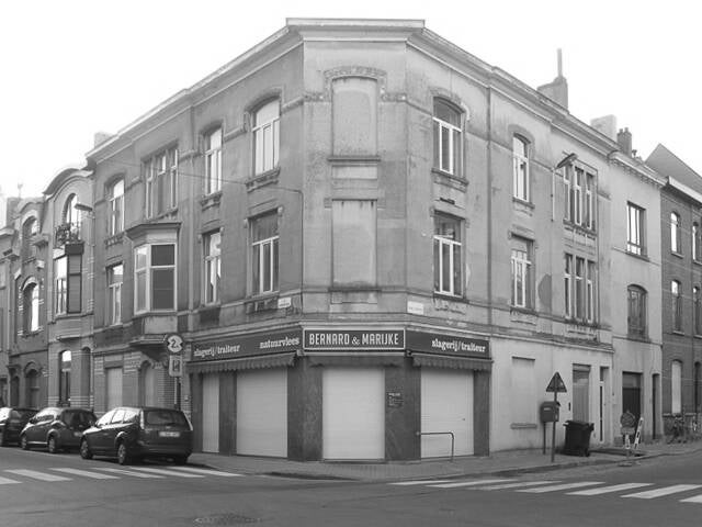 Het hoekhuis met de Patijntjestraat (Aaigemstraat 36), voorzien van een typerend café met toegang in de afgkante hoektravee, kwam tot stand volgens een bouwaanvraag van 1886, samen met vijf links aanpalende huizen in de Aaigemstraat.