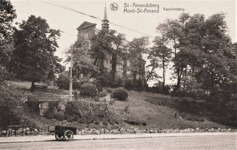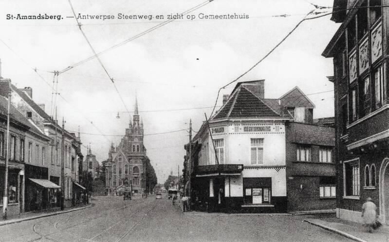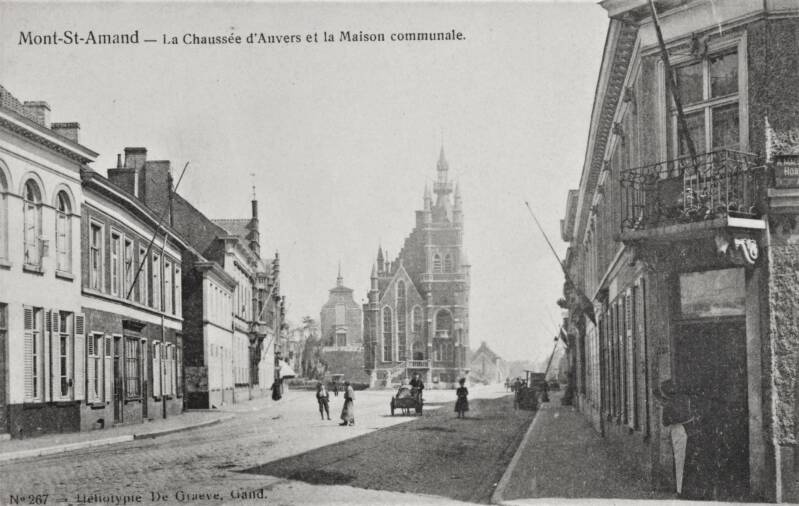Oude steenweg van Gent naar Antwerpen (zie ook Antwerpsesteenweg). Ter hoogte van de Kapelle- of Sint-Amandsberg volgde de steenweg vroeger het tracé van de smalle en gebogen Achterstraat rondom de voet van voornoemde heuvel. Voor de Sint-Amandsberg, met zijn gelijknamige kapel en het Campo Santo op de noordelijke flank, en aan het vertrekpunt van de Visitatiestraat, werd in 1883 het monumentale neogotische gemeentehuis ongetrokken. In een bloemenperk ervoren bevindt zich het heldenmonument voor de oorlogsslachtoffers 1914-1918 met bronzen engelenbeeld op hoge arduinen sokkel met sculpturen, door Aloïs De Beule.