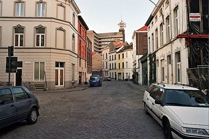 Oud straattracé, voorheen Zakkebandstraat en Kelderstraat geheten, waarvan de rooilijn verlegd werd midden 19de eeuw en rond 1881, met name tezelfdertijd als de aanleg van nieuwe brede straten en pleinen in de wijk Overschelde. De huidige bebouwing bestaat voornamelijk uit in serie opgetrokken arbeidershuizen of kleine burgerwoningen uit het derde kwart van de 19de eeuw of van later. Voorts ingenomen door de gebouwen van de vroegere brouwerij Meiresonne (zie Koepoortkaai nummer 15).