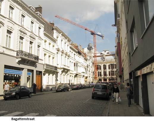 Vanouds bekende straat tussen de Nederkouter en de Sint-Pietersnieuwstraat, in 1861 verbreed en voorzien van een typische eind 19e-eeuwse architectuur. Brede rechte straat met licht hellend straatniveau en vrij homogeen behouden neoclassicistische bebouwing. Overwegend middelgrote burgerhuizen met enkelhuisopstand, drie bouwlagen en meestal drie traveeën onder zadeldak met vaak verspringende kroonlijsten op fraai uitgewerkte consoles.