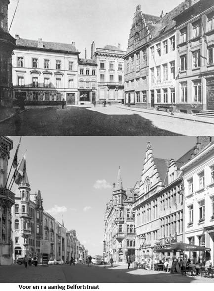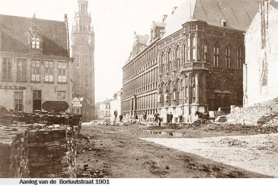 In 1899 werd de noordzijde van de Botermarkt, het pleintje voor het stadhuis, geopend voor het trekken van de brede en rechte Borluutstraat tot bij Sint-Jacobs. Enkel het gedeelte tussen de Kammerstraat en Vlasmarkt id est de verdwenen Korte Kammerstraat bevat enkele oude kernen aansluitend bij de Vlasmarkt en Bij Sint-Jacobs. Het typische en nog vrij ongeschonden straatbeeld wordt echter voornamelijk gevormd door statige burgerhuizen uit begin 20ste eeuw, voornamelijk opgetrokken in eclectische bouwtrant. Naast openbare gebouwen ontworpen door stadsarchitect Charles Van Rysselberghe (1850-1920), vormen vooral de huizen van architect Jacob Semey (1864-1934) een opvallend en boeiend ensemble. De meeste van zijn woningen zijn gewijd aan of dragen namen van belangrijke Gentse of Vlaamse historische figuren; de gevels zijn dan ook voorzien van opschriften, reliëfs, borstbeelden die het historisch belang van die figuren of hun daden toelichten.
