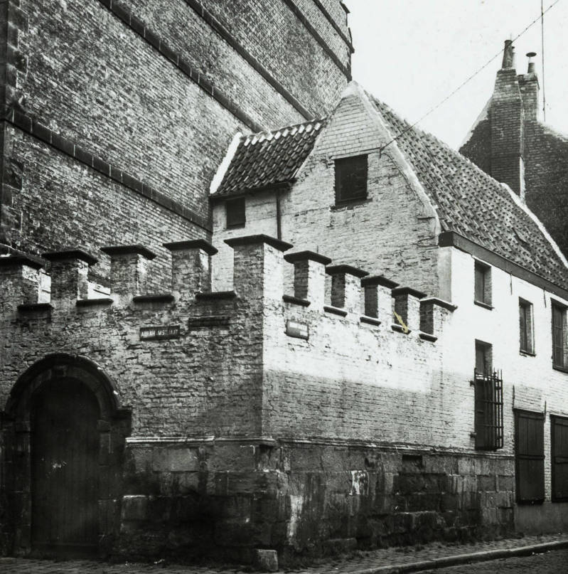 Het huis waar verwezen wordt staat in de Burgstraat. Archiefstukken vermelden reeds in de 14de eeuw het zogenaamde "Naeldekens Couvent", een klooster met kapel waar meisjes zich toelegden op het naaien. In 1376 worden de kloostergebouwen betrokken door de Bonifanten en ingericht als gesticht en school voor arme kinderen (enige jaren voordien opgericht door Simon de Mirabello. Kijk daar voor meer info hierover