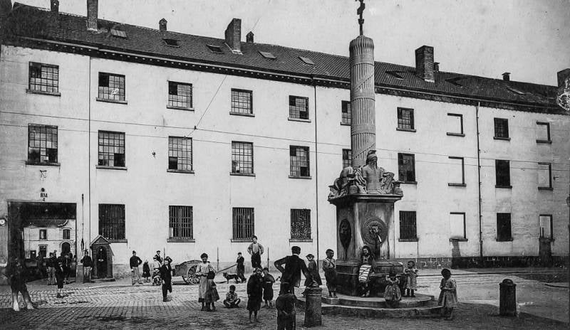 1858, Bouwen van een cachot met 16 cellen langsheen de Scheldekaai.