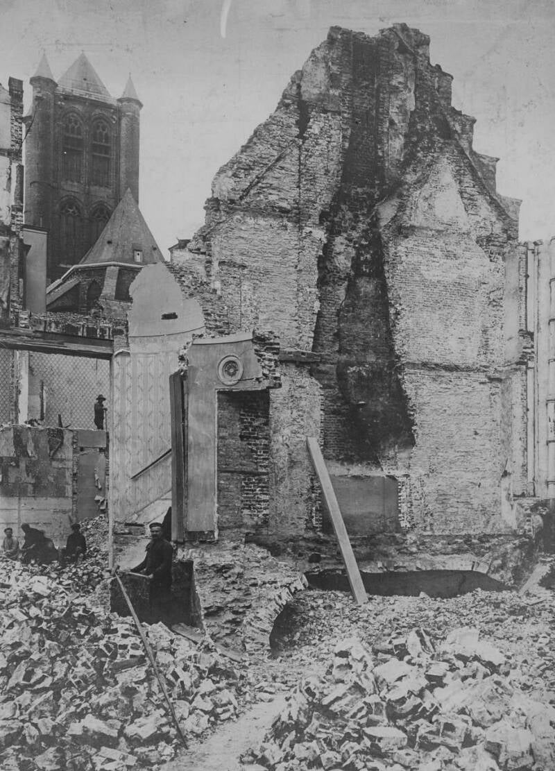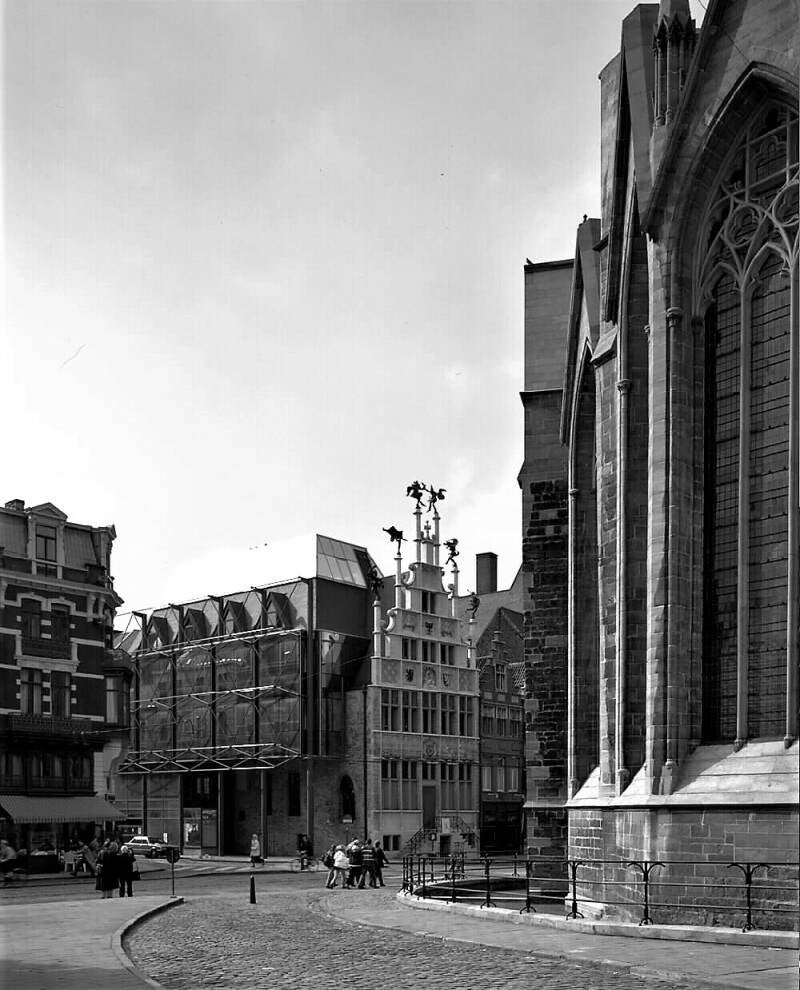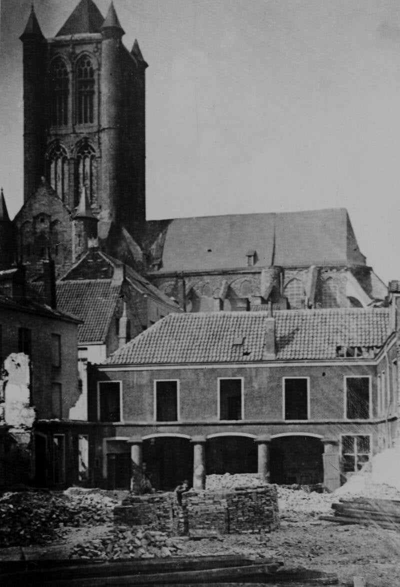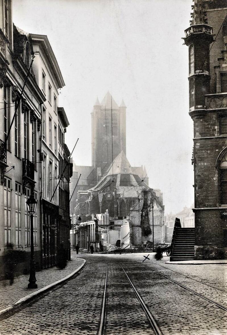 De verdere afbraak van het blok tot aan de Korte Ridderstraat kwam er onder druk van de Belgische staat dat alleen financiële steun verleende bij algemene sloop. Bij deze sloop in 1906 is een waardevolle gevel aangetroffen van het oude Gents stadhuis.