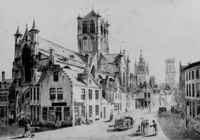 De groei van Gent naar meer ruimte deed de bebouwing aan de Kleine Korenmarkt verdwijnen. Onder het Calvinistisch bewind verdween alle bebouwing rondom de St.-Niklaaskerk, inclusief het kerkhof.