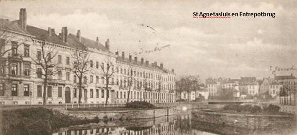De groene St.-Agnethebrug, een wipbrug genoemd naar het klooster aan de Lindelei waarvan reeds sprake in 1462 (afgebroken in 1826 voor de Nijverheidsschool), is ook gekend als de Entrepotbrug refererend naar het stapelhuis hier in de buurt.