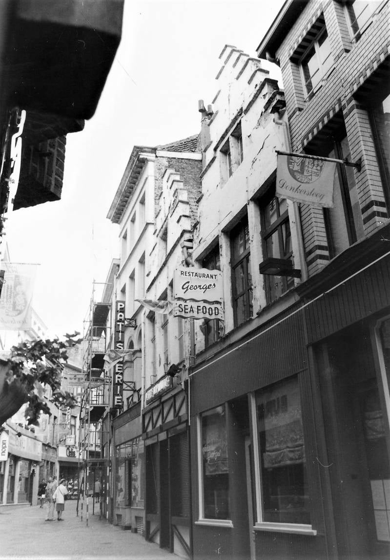 De Donkersteeg was gekend voor zijn vele eethuizen en herbergen. Tijdens de Gentse Feesten was het dan ook traditie er mosselen met friet te gaan eten. Al dateert dit gebruik van ver voor de Eerste Wereldoorlog toen welstellenden zich deze weelde konden veroorloven en de doorsnee Gentenaar enkel de Donkersteeg bezocht om dit te aanschouwen.