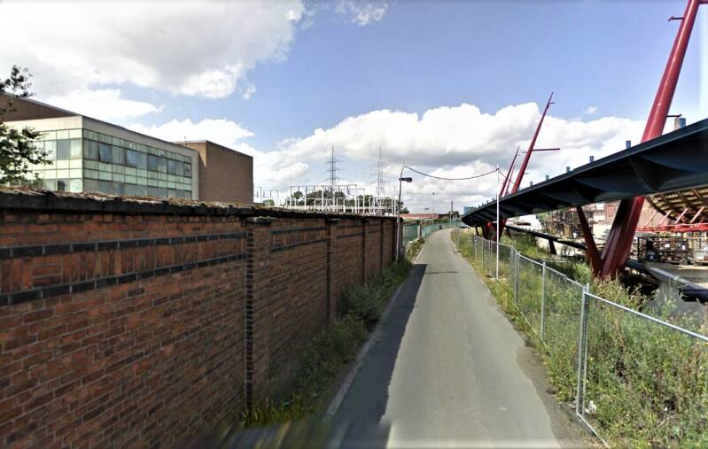 Straatje leidend van de Nieuwevaart (aan het verbindingskanaal van de Brugse Vaart met het Kanaal Gent-Terneuzen) naar de fabriek van Pol Madou, en met beide genoemde kanalen verbonden door de ringspoorlijn met een aftakking voor privé-gebruik binnen het fabrieksterrein. Gelegen in het onbebouwde deel van de vroegere Wondelgemse Meersen.