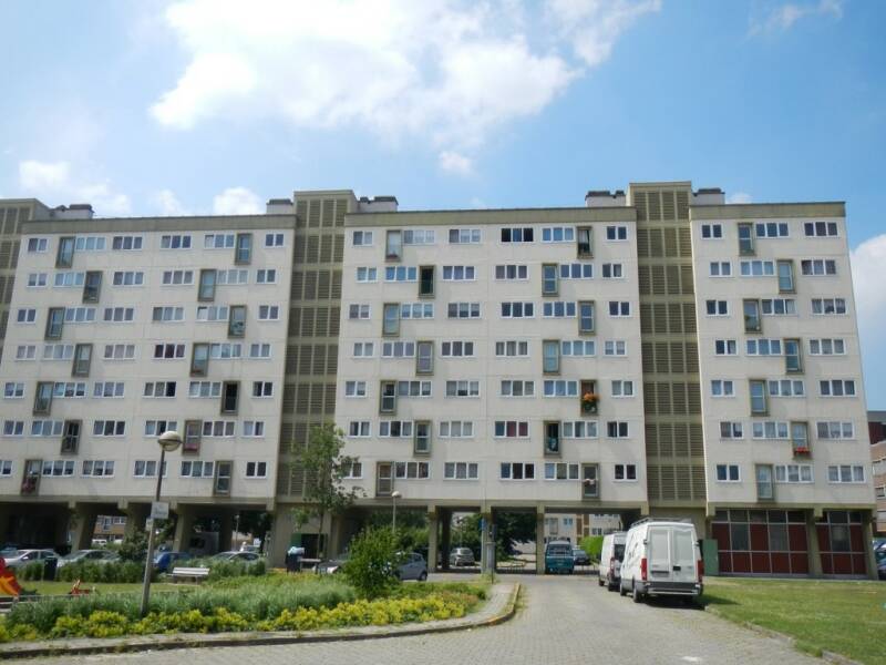 Vanaf 1949 maakte het stadsbestuur opnieuw plannen voor sanering van de Groenebriel maar pas in 1952-1953 kwam het project in een stroomversnelling terecht. In 1952 kwam een liberaal-socialistisch gemeentebestuur aan de macht dat uitermate positief stond ten aanzien van hoogbouw en een jaar later werd nationaal een nieuwe wet op de krotopruiming uitgevaardigd. Nog in 1953 werd een BPA opgemaakt voor de Groenebriel die de sloop voorzag van alle overblijvende woningen (ruim 200), met uitzondering van de sociale appartementsgebouwen uit het interbellum. Aanvankelijk was het de bedoeling dat het project over de verschillende sociale huisvestingsmaatschappijen van Gent zou verdeeld worden (zoals de Watersportbaan) maar uiteindelijk bouwde enkel de Gentse Maatschappij voor de Goedkope Woningen (vanaf 1958 Gentse Maatschappij voor de Huisvesting) de woningen. Architect was Jules Trenteseau die ook aan de Watersportbaan en het Rabot sociale hoogbouw realiseerde.