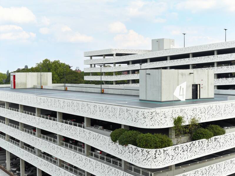 Architecturaal wordt het project gekenmerkt door uit geprefabriceerde betonnen elementen samengestelde gevels, een speelse afwisseling van horizontale en verticale ramen en betonnen claustrae met horizontale spleten aan de circulatieruimte. Het centrale gebouw aan het Winston Churchillplein staat op karakteristieke schuine, betonnen pilotis. Een herdenkingsplaat op de gevel aan de Baviaanstraat herdenkt dat dit het eerste complex was dat aangesloten werd op stadsverwarming (1958).