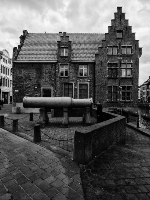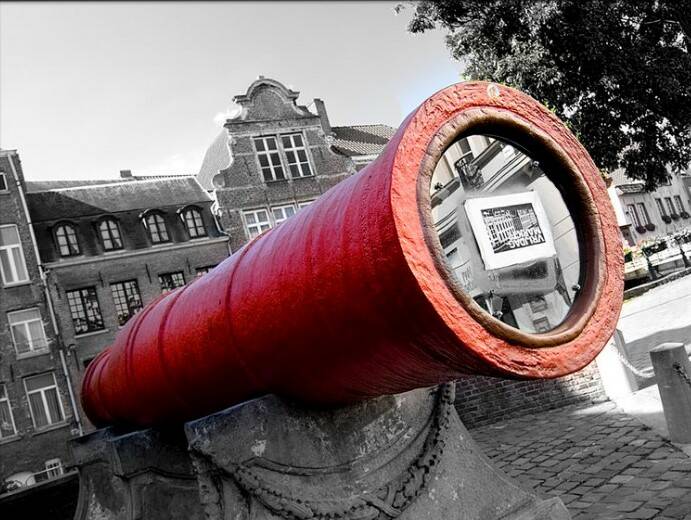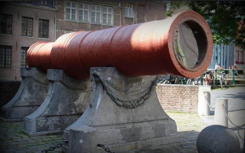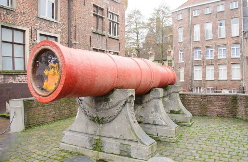 Groot kanonplein met Groot kanon of de Dulle Griet of dikke Bertha