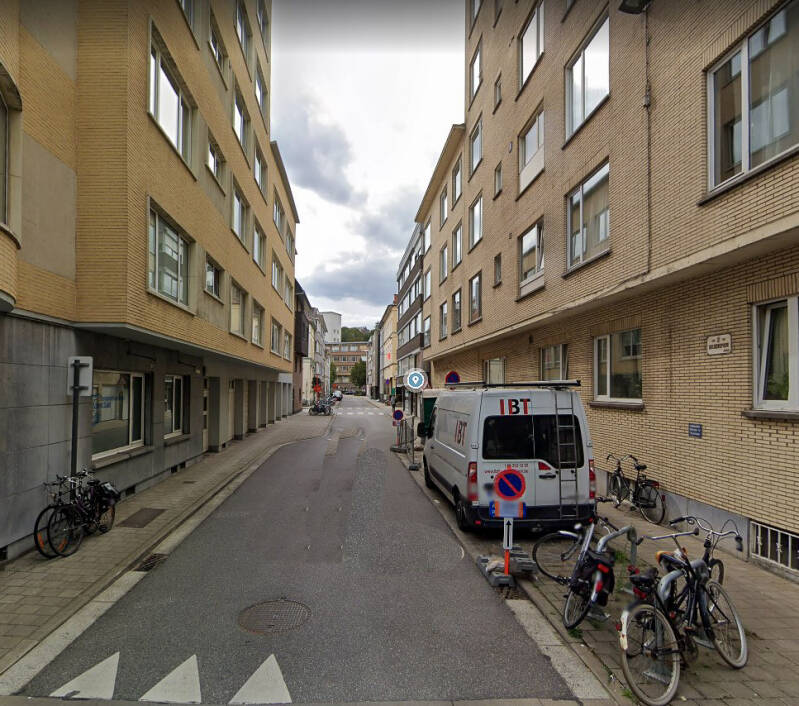 Dwarsstraat tussen de Muinkkaai en de Franklin Rooseveltlaan, verbreed in 1884. Bebouwd met eenvoudige burgerhuizen met bepleisterde lijstgevels uit tweede helft 19de eeuw. Enkelhuizen voorzien van imitatiebanden onder een dunne puilijst. Rechthoekige of steekboogvormige muuropeningen, in geprofileerde omlijstingen op de bovenverdieping. Veelal een lagere bovenste verdieping onder de kroonlijst