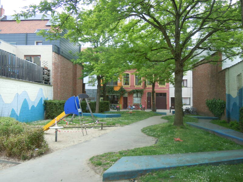 Evenals de Eendrachtstraat en Zalmstraat een in 1884 aangelegde verbindingsstraat tussen de Forelstraat en de Vlaamsekaai op de zogenaamde Heirnis. Verscheidene reeksen arbeiders- en kleine burgerhuizen in eenheidsbebouwing uit eind negentiende eeuw van twee, twee en een halve tot drie bouwlagen en meestal twee travee in repeterend schema. Reeds vele onderbrekingen in de straatwand door nieuwbouw of vernieuwde parementen. Daarnaast ook bakstenen rijhuizen met natuurstenen banden en boogstenen.