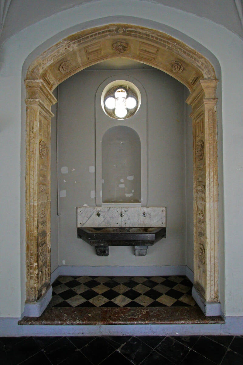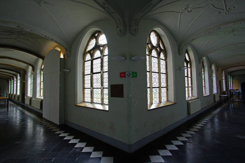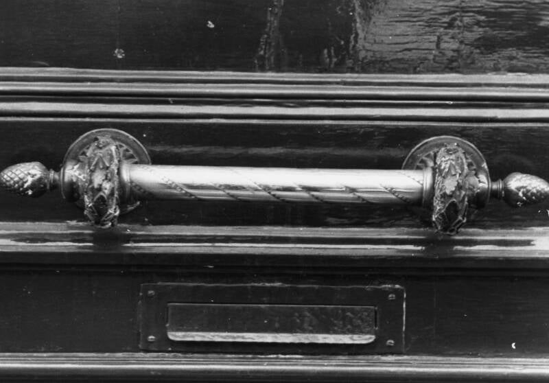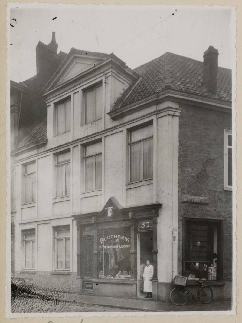 Eertijds eveneens brouwerij zogenaamd "De Caerde" (tot 15de eeuw), later "Het Trompet" en "De Spiegel". Trapgevel (7 treden, sporen van topstuk) van vier traveeën en twee bouwlagen onder zadeldak (pannen), daterend van 1641-42.