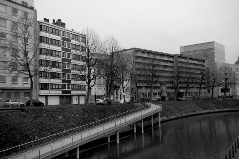 Van de aanvankelijke kleinschalige bebouwing uit de vroege 20e eeuw blijven slechts enkele panden bewaard. Nummer 24, 25 en 27, 28: neoclassicistische burgerhuizen met drie bouwlagen en twee of drie traveeën onder doorlopende of iets verspringende kroonlijst. Belijnde lijstgevels met imitatiebanden op de begane grond en doorlopende kordons. Rechthoekige, omlijste vensters op de bel-etage gemarkeerd door druiplijsten. Nummer 27, 28 bovendien gemarkeerd door een erker en balkon. De overige panden moesten plaats ruimen voor moderne hoge bouw en het in 1973 ingehuldigde tehuis Corneel Heymans voor gehuwde studenten.