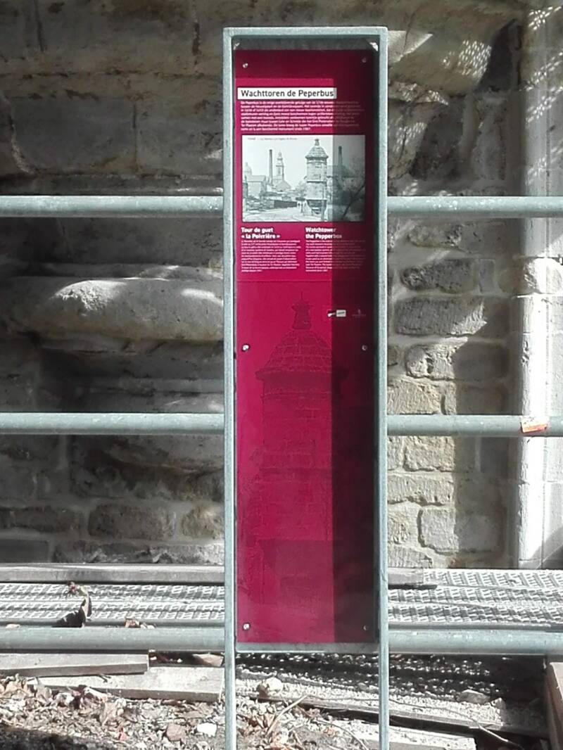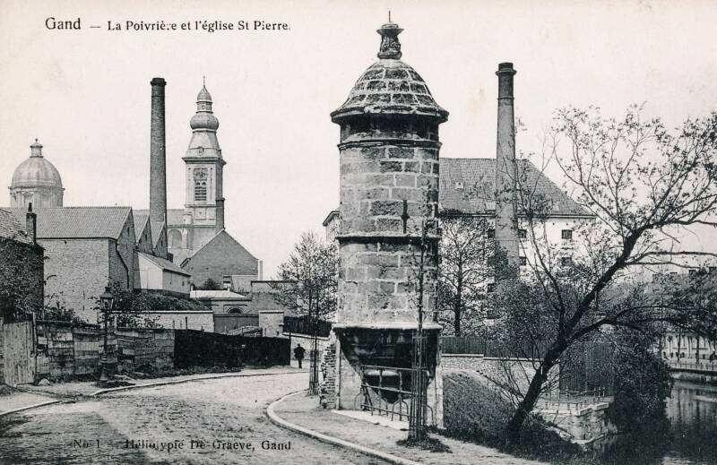 In de loop van de woelige 16de eeuw kreeg Gent geleidelijk nieuwe stadsmuren. De werken werden vooral onder het calvinistisch regime en in de daarop volgende decennia geactiveerd. De oude middeleeuwse versterkingen maakten plaats voor het modernere bastionstelsel dat op artilleriebeschieting voorzien was. Ook nog niet ommuurde delen van de stad werden toen in het nieuw beschermingssysteem opgenomen. Zo legde men in het zuidelijk gelegen Sint-Pietersdorp een bijkomende bakstenen muur aan tussen Leie en Schelde, van de Heuvelpoort tot de Kortrijksepoort. Aan het eindpunt van de Schelde, bij Ter Plaeten, richtte men twee uitkijktorentjes in zandsteen op, waarvan de "Peperbus" (zo genoemd wegens zijn vorm) de enige overblijvende getuige is. De site is nu dermate veranderd dat men de vroegere militaire context zelfs niet meer kan raden. Het verwaarloosd torentje staat er als een vreemd standbeeld en geeft een onstabiele indruk. Het grote kraagstuk waarop de helft van de romp rust, vertoont zeer mooie profileringen.