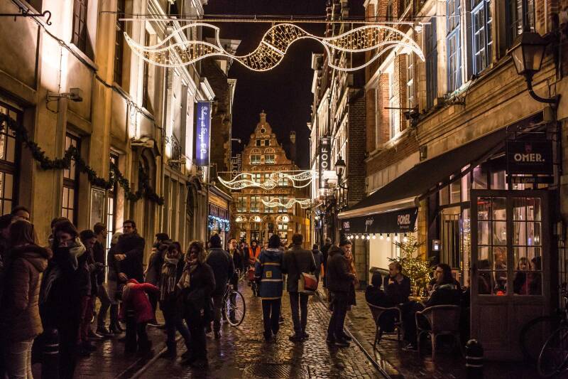 Deze straat werd voorheen in twee gedeeld door de Houtlei die ter hoogte van het voormalig Hotel De Coninck uitmondde in de Leie. De brug over de Houtlei droeg de naam Appelbrug naar de bekende, bij de brug gelegen herberg of "hostellerie de Gulden Appel" (15de eeuw) op de plaats van hotel De Coninck, het huidige museum voor Sierkunsten.
