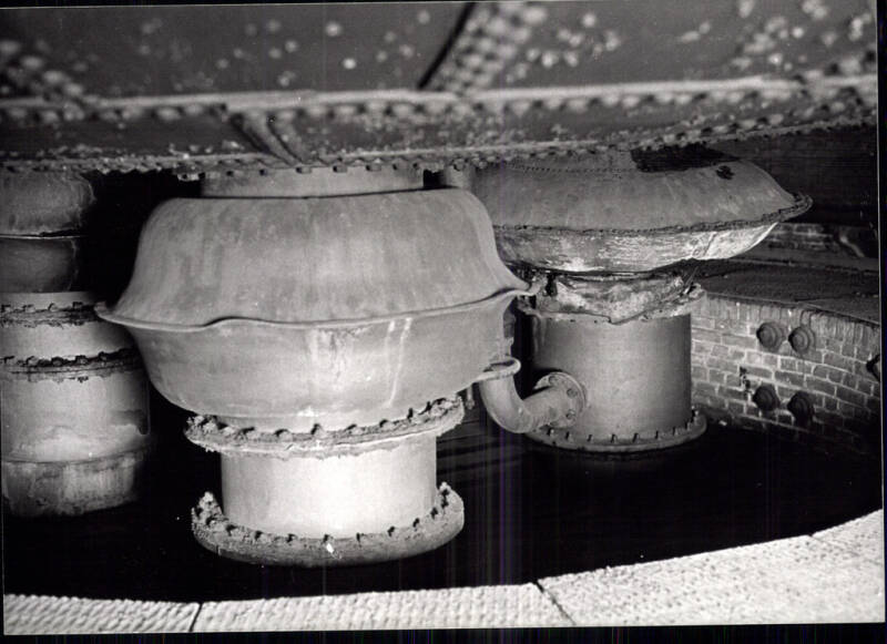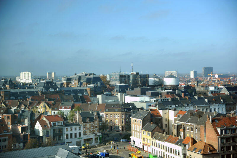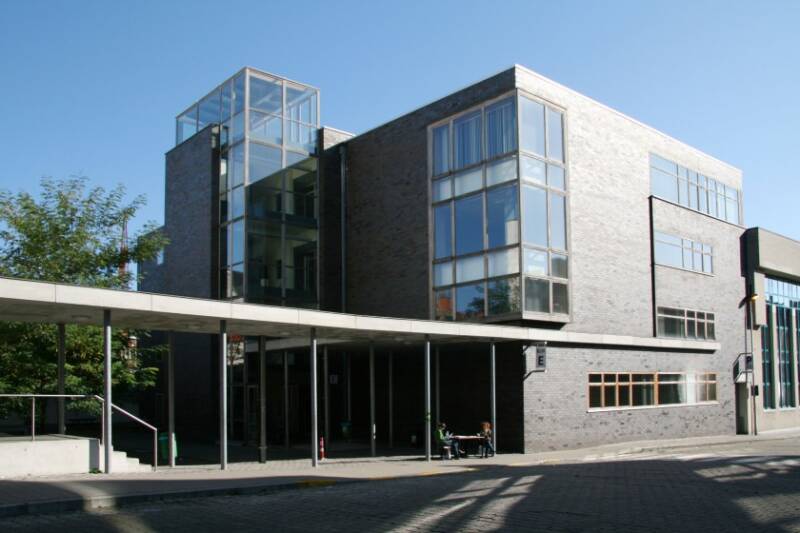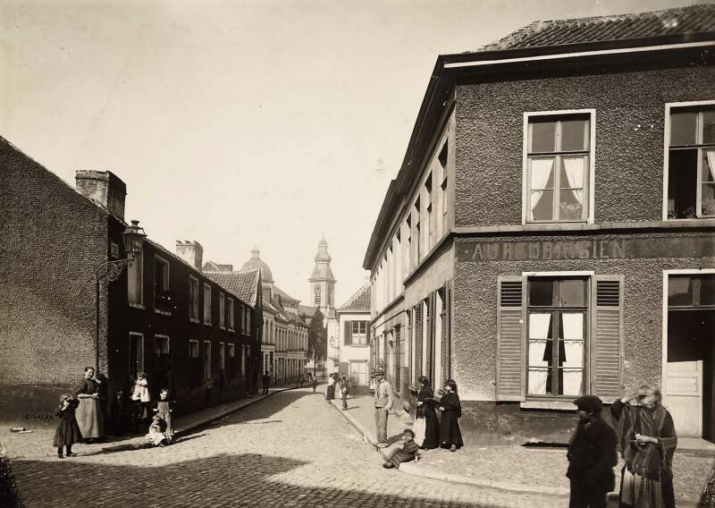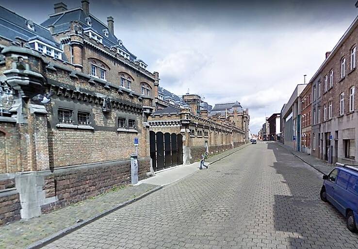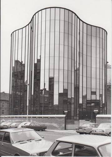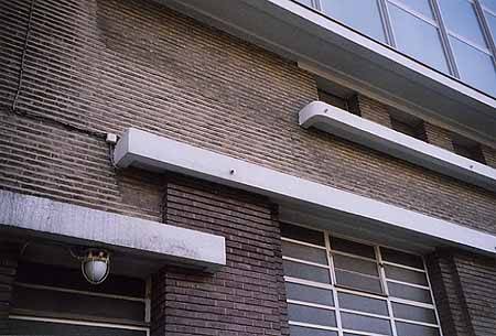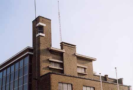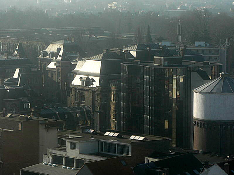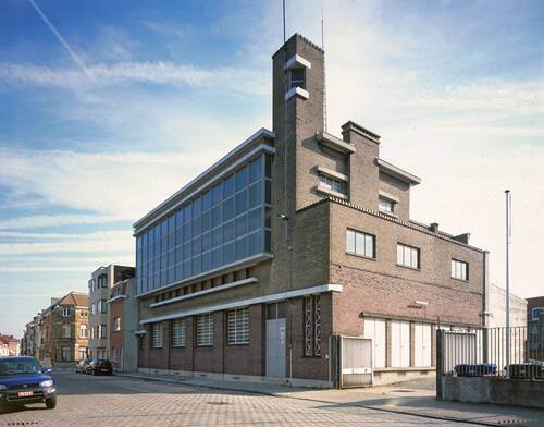 De vroegere dienstgebouwen tussen de Kattenberg, Jordaensstraat en David Teniersstraat naar ontwerp van W. Valcke, bouwmeester. De nieuwe watertoren en gebouwen aan de overzijde van de straat zijn het ontwerp van architecten G. en D. Bontinck (1975-1977).