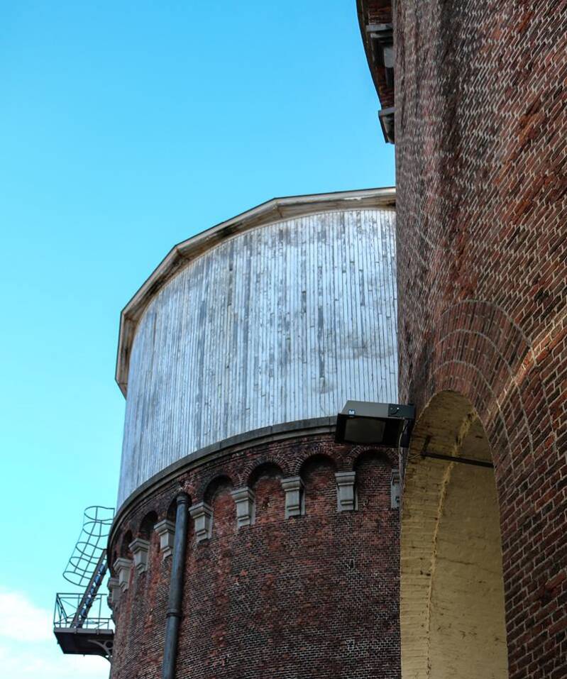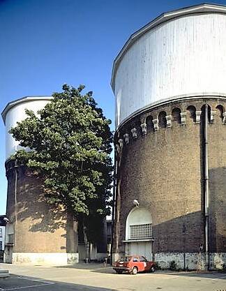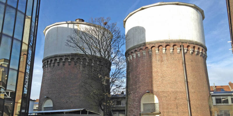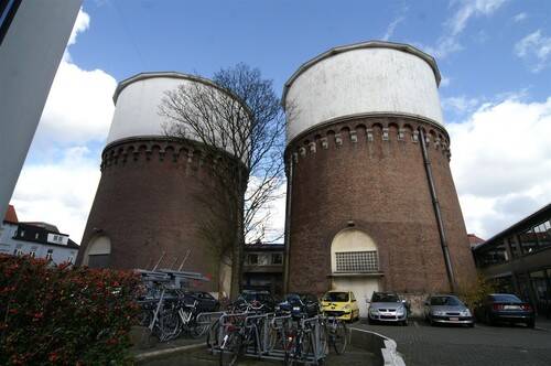 Complex van de watervoorzieningsdienst van de stad omvattende twee watertorens van 1880-1882, gedomineerd door de moderne glas- en metaalconstructie van de nieuwe toren, opvallend onder meer door het gebruik van grijs zonnewerend glas.