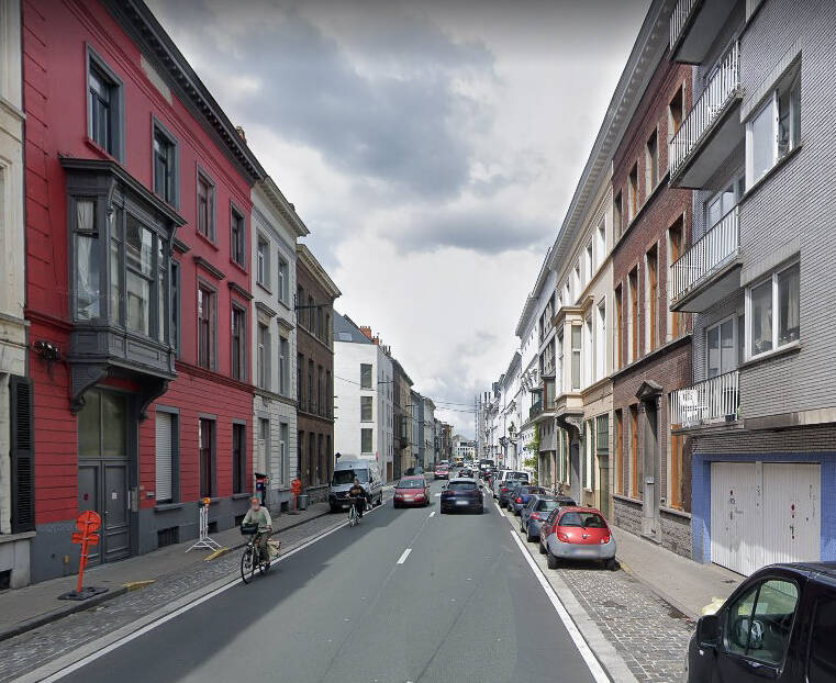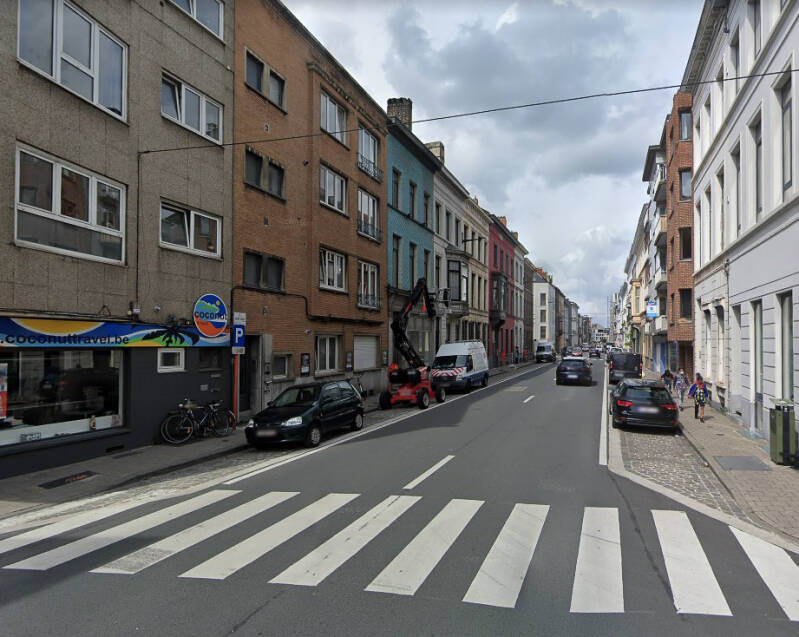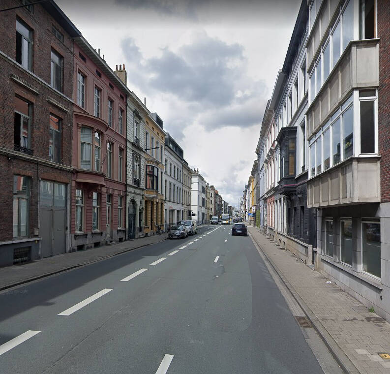 Lijnrechte straat getrokken doorheen de vroegere zogenaamde "Krommen Es" tussen 1837 en 1841, bij de verkavelingen van de schaars bebouwde gronden rond het pas opgerichte Zuidstation, als verbinding van het station met de Vrijdagmarkt in het oude stadscentrum. In het verlengde van de Sint-Jacobsnieuwstraat; met vrij homogeen uitzicht van bepleisterde en witgeschilderde lijstgevels in neostijlen; evenwichtig geritmeerde scenografie door de gelijkmatige gevelvolumes van gemiddeld drie of drie en een halve bouwlaag, perspectief afgesloten door het beboomd Jacob Van Arteveldeplein (huidig Sint-Annaplein) met de Sint-Annakerk. Het begin der oostzijde wordt verstoord door het recente R.T.T.-gebouw en een reeks onaangepaste hoge bouwen op een ongelukkige wijze ingeplant op de hoeken van de Gebroeders Van Eyckstraat.