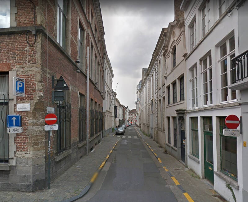 Smalle rechte straat, licht afhellend van de Zandberg tot de Vlasmarkt. Linker straatzijde (onpare nummers) voornamelijk bebouwd met drie bouwlagen hoge lijstgevels daterend van aanvang 19de eeuw tot aanvang 20ste eeuw en met verspringende kroonlijst; meeste woningen tussen Kammerstraat en Vlasmarkt behielden hun oorspronkelijke hoogte (19de eeuw) doch de gevelindeling werd grotendeels gewijzigd. Rechter straatzijde omvat nog enkele kleinere oude kernen (18de eeuw), doch wordt voornamelijk gemarkeerd door twee grote 18de-eeuwse hotels: het meest opvallend is de merkwaardige rococogevel van het voormalig Dammansteen of Huys van Oombergen waarop men van de Vrijdagmarkt doorheen de Kammerstraat vanouds een prachtig uitzicht had; thans wordt dit zicht totaal verstoord door het moderne torengebouw van de R.T.T. dat boven het voormalig Huys van Oombergen verrijst, en waardoor dit laatste veel van zijn monumentaal karakter verliest.