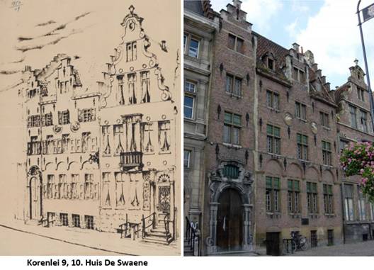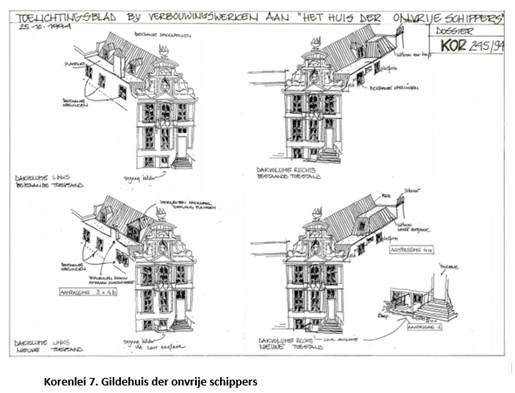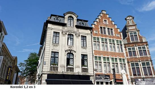 In overleg met de Dienst Stedenbouw en de Dienst Monumentenzorg en Architectuur werd geopteerd om de zone van het hoofdvolume aan de Korenlei te behouden omwille van de waardevolle ornamenten in zowel de gevel als het interieur. De achterzijde en het bestaande dakvolume werden echter wel volledig vernieuwd.