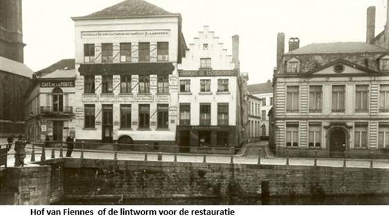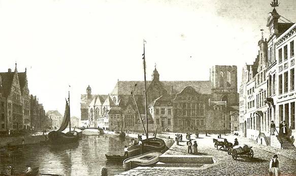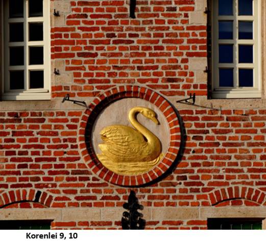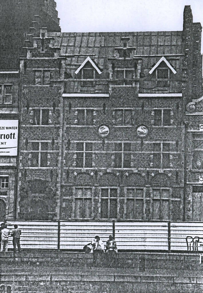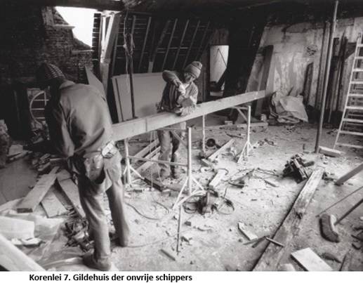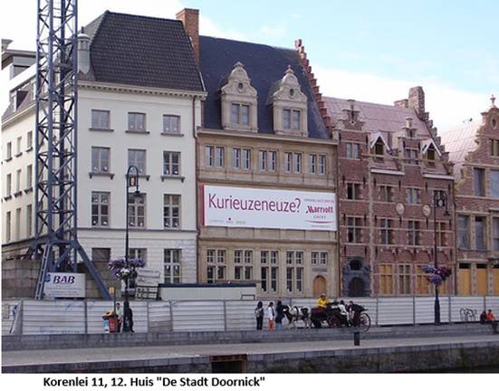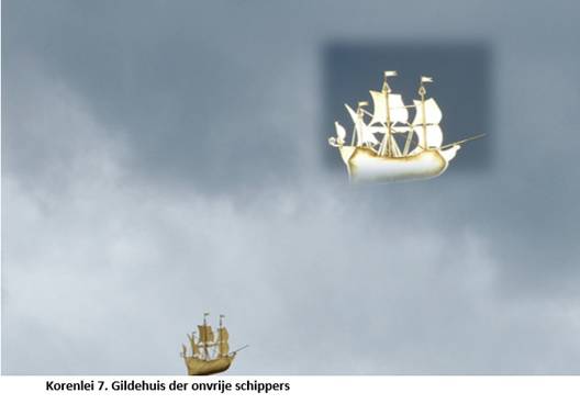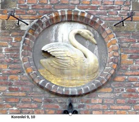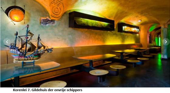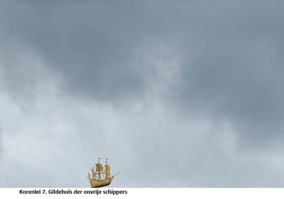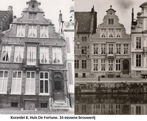 Links en rechts van het gildehuis van de Onvrije Schippers staan huizen die in vroeger tijden een bierbrouwerij waren, een herberg, of een bordeel: ‘De Swaene’ (nummer 9), ‘De Fortune’ (nummer 8) en ‘De Vijf Hellemen’ (nummer 6).