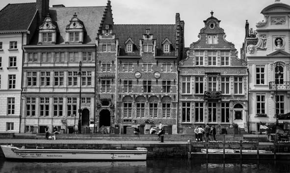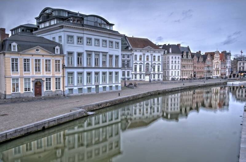 Terwijl je geniet van het zonnetje op de Graslei was het je misschien al opgevallen, maar aan de overkant van de Leie, ligt een residentieel complex met misschien wel het mooiste zicht op Gent. Een historisch waardevol pand werd er door Vincent Van Duysen grondig gerenoveerd. Van op straat echter enkel te herkennen aan het hedendaagse, doch subtiele, nieuwe dakvolume.
