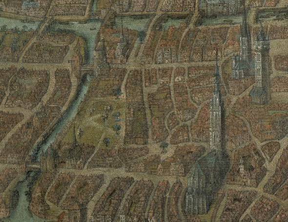 De zuidkant bleef range tijd onbebouwd tot de Sint-Sebastiaansgilde zich daar in de 16de eeuw vestigde en in het midden van het plein hun schietbaan aanlegde (gesloopt in 1795). Hun complex werd in het eerste kwart van de 20ste eeuw vervangen door verschillende drankgelegenheden die op hun beurt gesloopt werden.