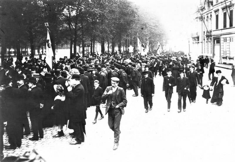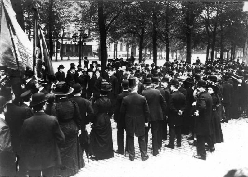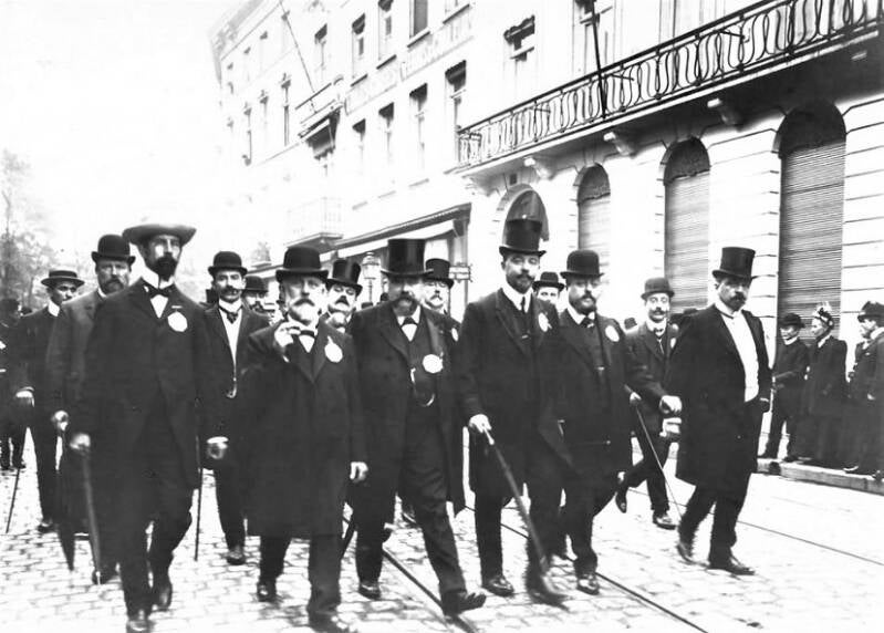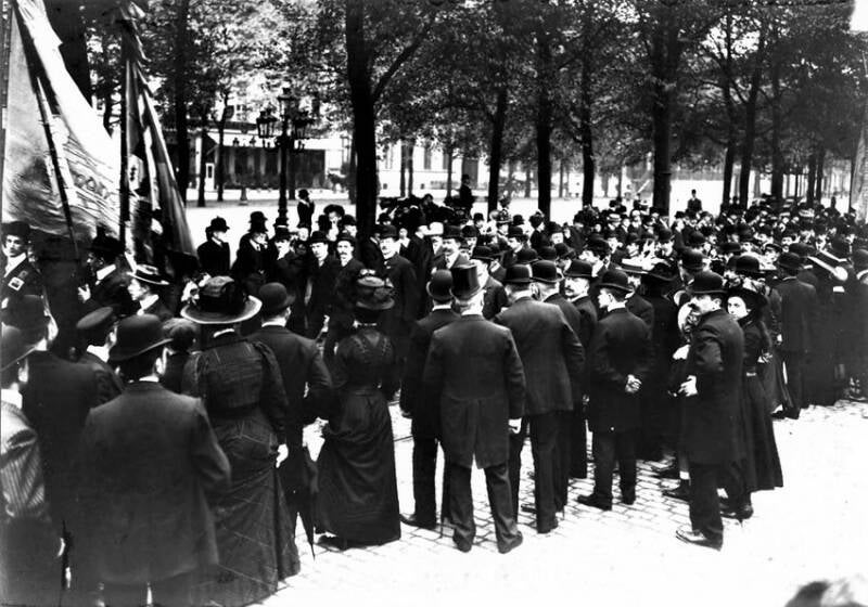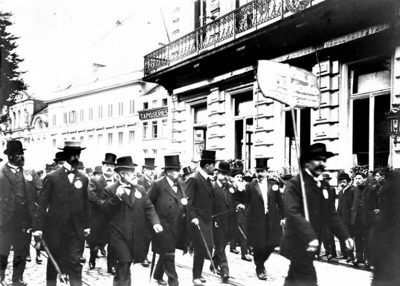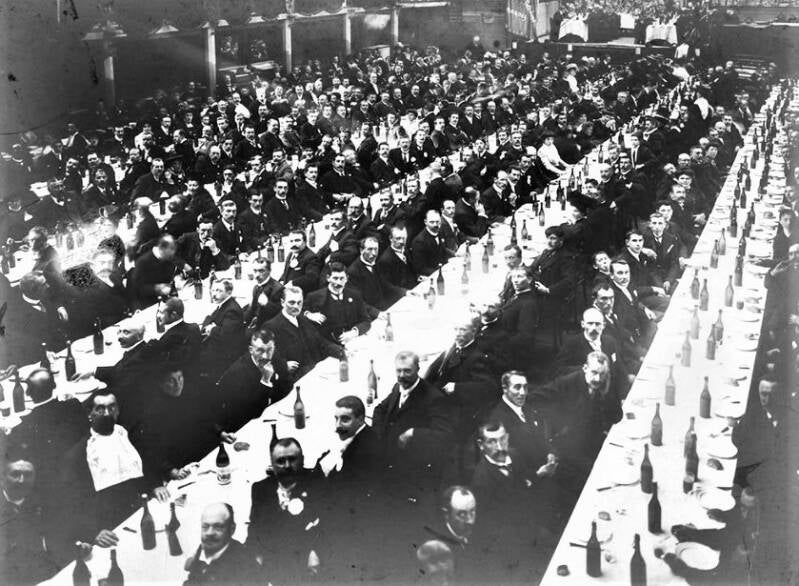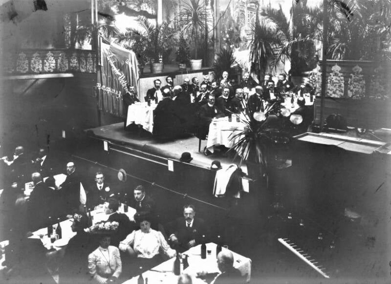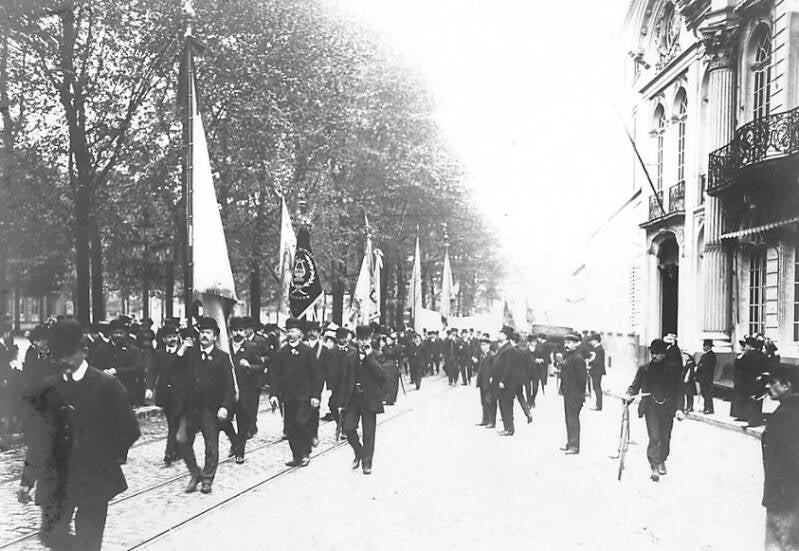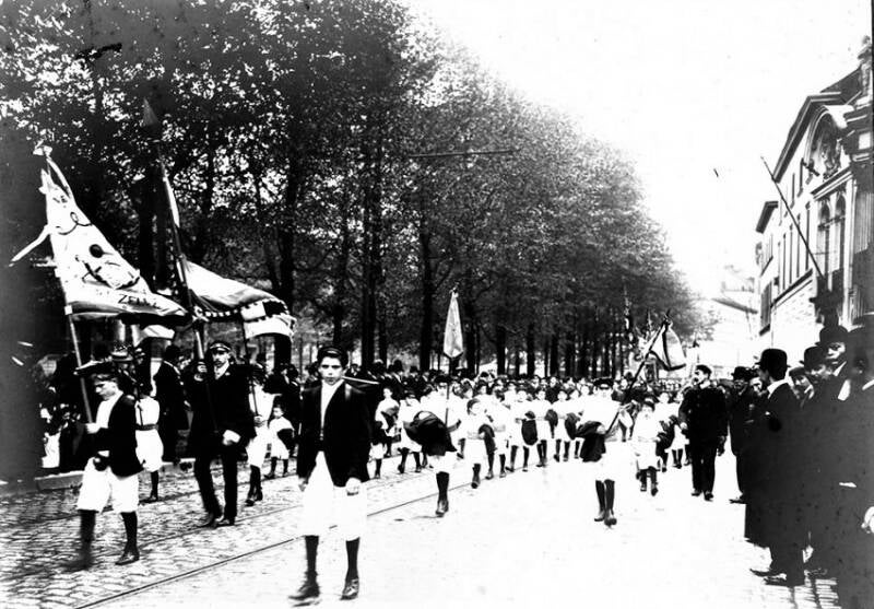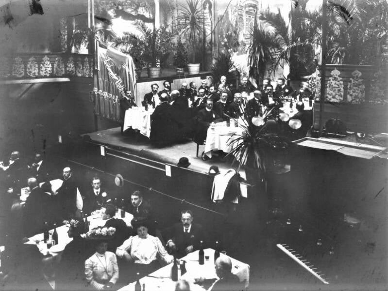 De Liberale Volksbond van het arrondissement Gent-Eeklo organiseerde op 26 september 1909 een reeks feestelijkheden om zijn nieuwe vlag in te huldigen. De collega's van Help U Zelve Antwerpen waren te gast in Gent. Het evenement werd belangrijk genoeg geacht om uitgebreid op foto vast te leggen. De foto's uit dit album opgedragen aan Julius Hoste tonen het banket en de stoet op de Kouter, evenals de vooraanstaande deelnemers, waaronder volksvertegenwoordiger Arthur Buysse, voorzitter van de Volksbond, en leden van de Liberale Associatie.