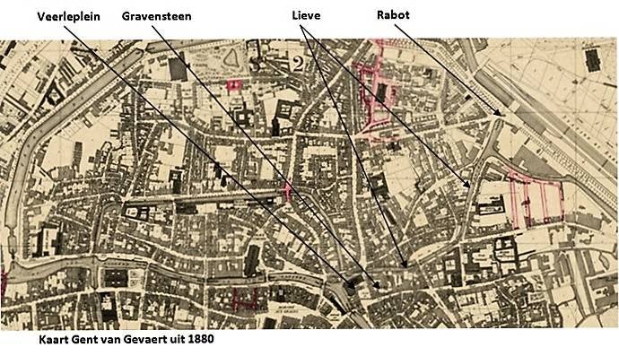 Alleen het gedeelte van de Lieve binnen Gent, tussen de St.- Antoniuskaai en het Gravensteen, had in 1758 nog het uitzicht van een kleine haven. Daar was het kanaal breder. Ook was de kade er van een kraan voorzien