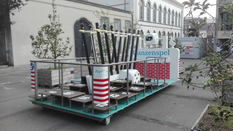 Een boomgaard midden in de stad. Dat is het Maaseikplein. Onder de appel- en perenbomen kan je gezellig picknicken. Ondertussen spelen de kinderen op houtsculpturen of leven ze zich uit op een reuzengroot ganzenspel. Gentse spreuken op de picknicktafels zorgen voor een ondeugende toets. In afwachting van de definitieve aanleg veranderde het plein van parkeerplaats in een verblijfs- en speelplek in het centrum van Gent.