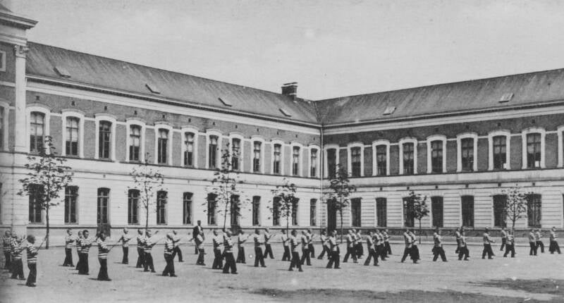 De Gentse weesjongens ook "Kulders" of "Blauwe jongens" genaamd waren tot 1873 ondergebracht in een deel van het Geeraard de Duivelsteen en de school aan het Bisdomplein (gesloopt in 1896-98, heden bebouwd met de Nationale Bank). In 1869 werd gestart met de bouw van een nieuw complex op gronden van de Bijloke aan de huidige Martelaarslaan. Dit enorme opgevatte complex naar ontwerp van stadsarchitect A. Pauli was voltooid in 1873.