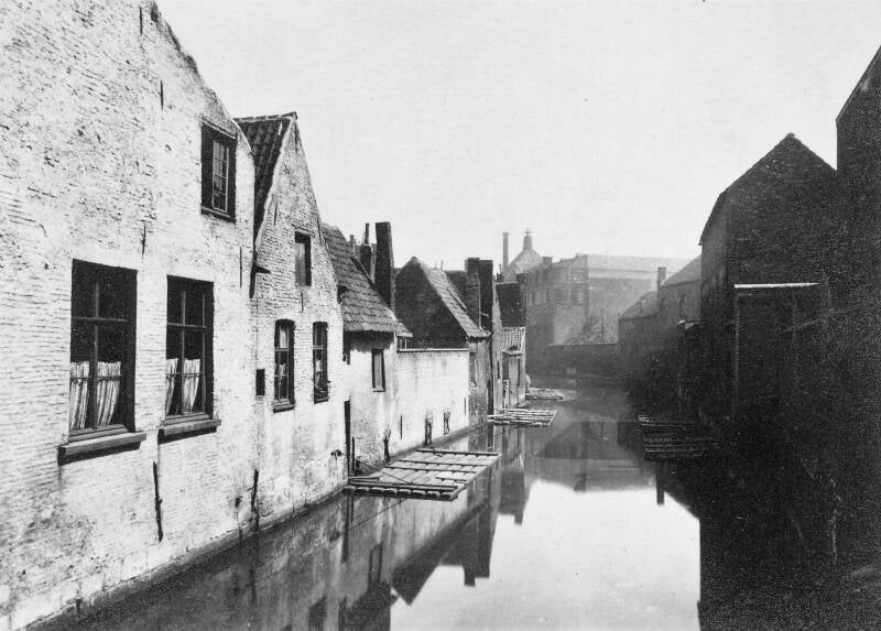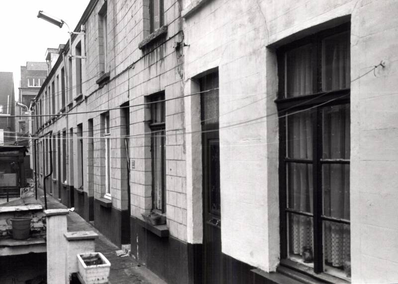Nummers 91-111. Eenzijdig bebouwd en luchtig steegbeluik (straat), achter smalle, doch open toegang. Gebouwd in 1860, ter vervanging.en mogelijk met hergebruik van delen van een reeds bestaand steegbeluik; alhoewel de diepte der huizen gelijk bleef, waren de nieuwgebouwde woningen echter noemenswaardig kleiner, door vermindering der gevelbreedten. De laatste twee (thans nummer 111) en de eerste twee huizen (nummer 91) werden circa 1928 samengevoegd. Steeg met deels geplaveide en deels gecementeerde bevloering, met in het midden afvoergoot. Woningen van twee bouwlagen, twee traveeën met repeterend schema, onder zadeldak (pannen). Gecementeerde gevels met schijnvoegen. Rechthoekige openingen of openingen onder strekse boog en hardstenen dorpels.