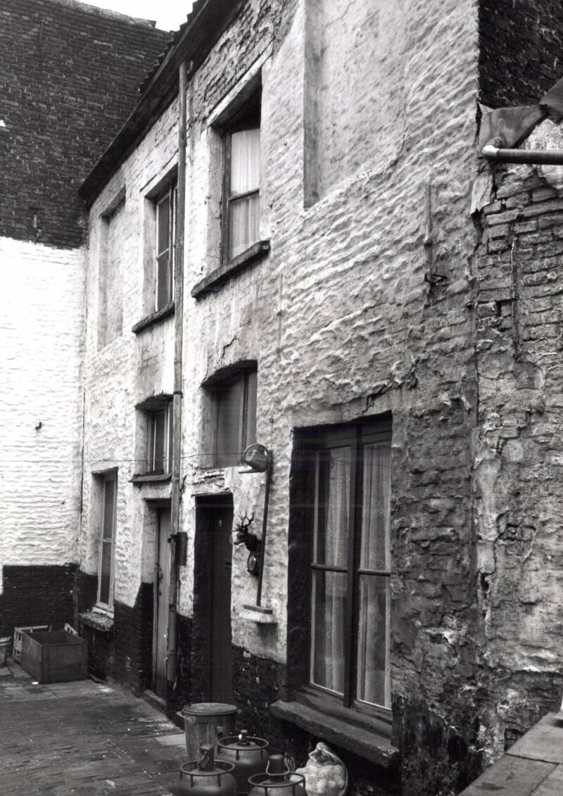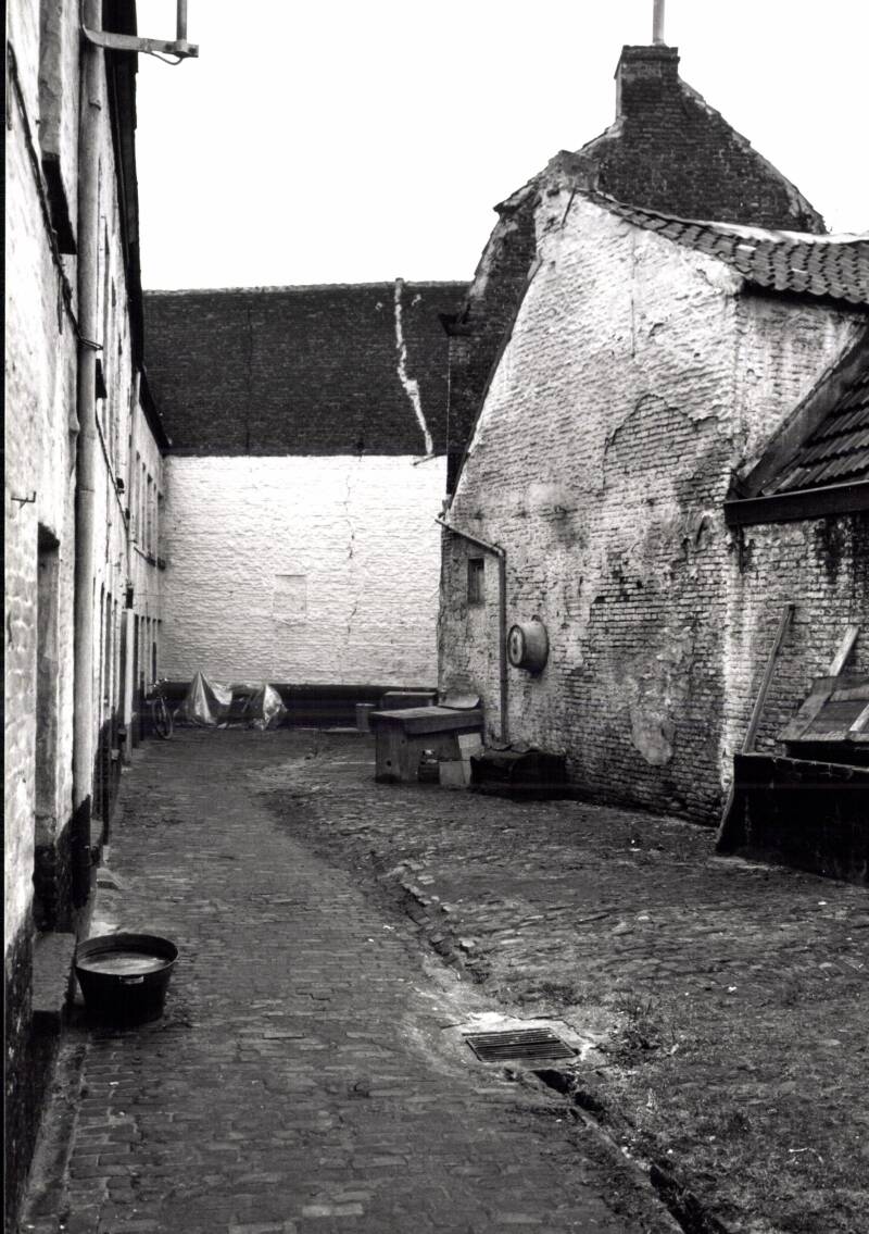 Nummers 5 tot 27 vormen een pleinbeluik waarvan de oorspronkelijke overbouwde toegang circa 1912 opengebroken werd tot de huidige open toegang, afgesloten door hardstenen paaltje. Gekasseide binnenkoer, met gemeenschappelijke toiletten in zuidelijke en oostelijke hoek, op de plaats van twee eveneens circa 1912 gesloopte woningen.
