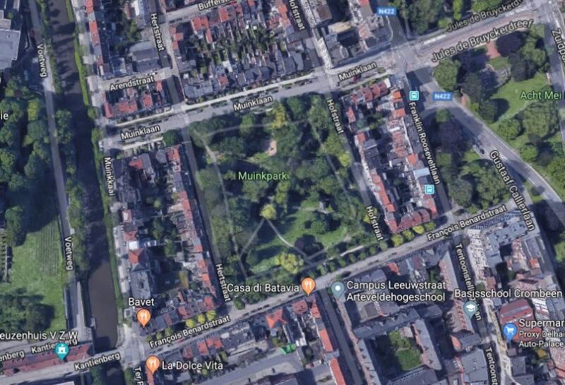 Het enige stukje dat nog overblijft is dit Muinkpark met de vijver waarrond de vogelkooien stonden als centraal punt. Het is ook nu nog steeds een mooi park, een oase van rust in de drukke stad. Er rond staan nog heel wat goedbewaarde herenhuizen uit het interbellum. Helaas kennen de meeste mensen het enkel aan de buitenzijde, bij het zoeken naar parkeerplaats als ze naar de film gaan...