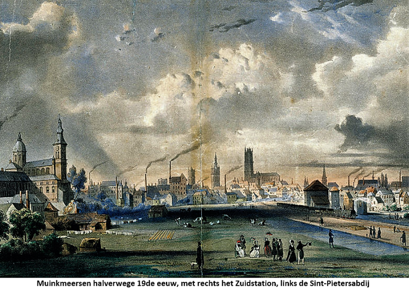 Halverwege de 19de eeuw werd in de Muinkmeersen het eerste grote station van de stad gebouwd, het station Gent-Zuid. De spoorlijn kwam vanuit zuidelijke richting de stad binnen en liep door de Muinkmeersen naar het station.