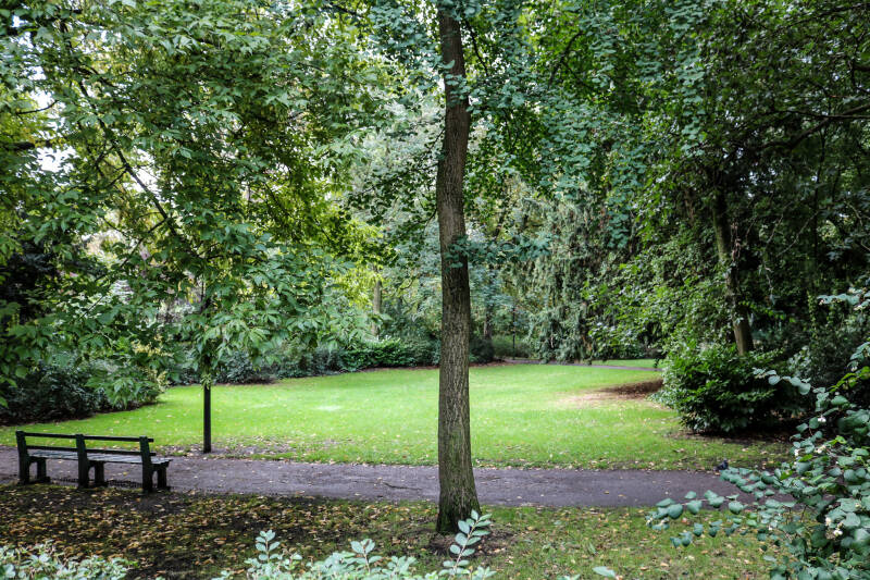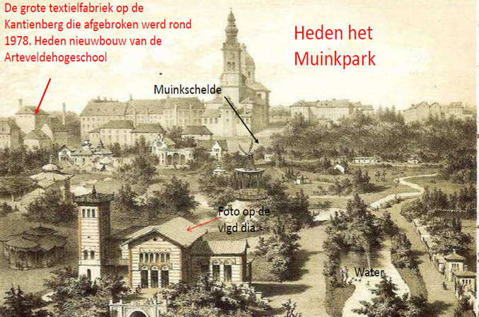 'Het Muinkpark ligt tussen het Zuidpark en de St. Pietersabdij. Dit waren vroeger de Muinkmeersen: natte grond langs de Schelde-oevers, weilanden.