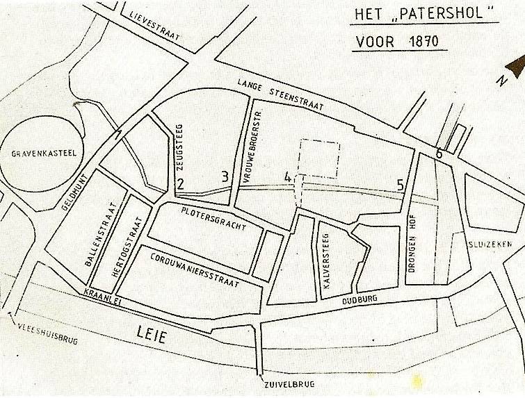 In de Middeleeuwen was er in het Patershol een slotklooster dat aan uitbreiding dacht. Er was echter een probleem, het klooster kon maar in één richting bijbouwen en als men dat zou gaan doen, dan zou men een sloot moeten dempen die de wijk van water voorzag. Dit was onmogelijk. Hoe dan ook, de paters trokken toch naar de Graaf van Vlaanderen met hun plan. Tot ieders verbazing ging die akkoord, het klooster mocht uitbreiden op één voorwaarde, dat de mensen nog steeds hun water aan de sloot zouden kunnen halen.