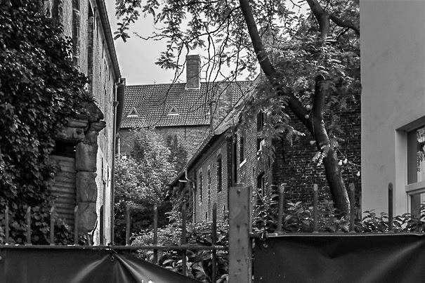 Het Patershol zoals ik het me ongeveer herinner uit mijn jeugd. Eind jaren ‘60, begin jaren ‘70 als ik met mijn moeder mee op bezoek ging naar een oude nicht van mijn grootvader. Zij woonde in een huisje, eigenlijk niet meer dan een kamertje, in het Pand. En om naar het toilet te gaan gaf ze haar sleutel mee want die toiletten waren in het hoofdgebouw en gemeenschappelijk.