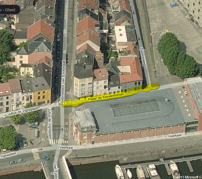 Voorheen Mortierstraat genaamd, leidt van de Gebroeders Van Eyckstraat tot de Veermanstraat; laatst genoemde straat verdween bij het optrekken van het nieuw torengebouw van de R.T.T. nabij de Oude Beestenmarkt. De ene straatkant wordt gevormd door de zijgevel van het stedelijk zwembassin "Van Eyck" van 1884.