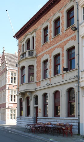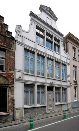 Vijf lage gietijzeren meerpalen, met voetstuk en kop uit één deel: op kop, klimmende leeuw , omgeven door band. Tegen de Sint-Michielsbrug nog een cilindervormige gietijzeren meerpaal met gietijzeren muts, waarop wapenschild met gekroonde klimmende leeuw.