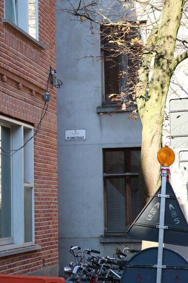 Op de hoek van de Zilverhof en het Pluimstraatje is een venster ingenomen door een beeldhouwwerk : voor een achtergrond van een twee meter hoog blok blauwe hardsteen zit een bronzen beeld van een breistertje stevig vastgeankerd.