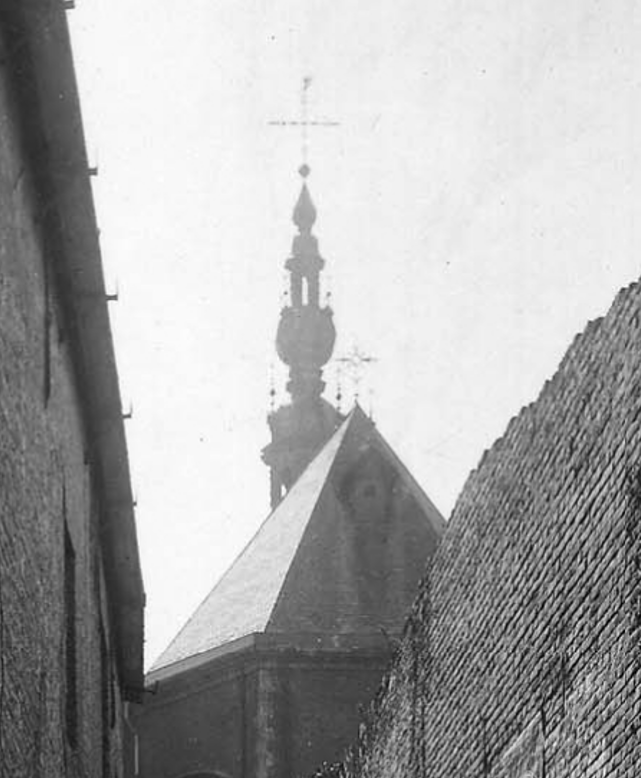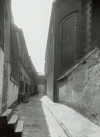 Op het Schokkebroersvestje bevonden zich dus, benevens het klooster, de kapel en de overgang over het straatje naar een bijhorend hoog gebouw aan de overzijde, ook woningen met een trapgevel, naast oude, kleine huisjes en stallen. Sommige woningen, gelegen in de Sint-Michielsstraat, kwamen met een poortje uit op het Schokkebroersvestje. Er was op het Vestje ook een "camere" voor de vergaderingen van buren van het lngelandgat. Aan de rand van de Poel, waar in de loop van de geschiedenis zoveel groten en machthebbers in het majestueuze Hof van Wakken (het latere Hotel de Nockere) hadden verbleven, leidde het Schokkebroersvestje zijn eenvoudig, dagelijks bestaan. Soms schrok het echter wel als vreemden er met geweld binnendrongen. Tegen het einde van de 18de eeuw stonden er het Schokkebroersvestje en zijn bewoners weer bewogen dagen te wachten. Het Frans bewind zou immers ook voor de Cellebroeders of Schokkebroeders nefaste gevolgen hebben. Reeds in 1794 waren er moeilijkheden toen de Fransen vanwege de Broeders een zware belasting kwamen eisen waaraan nochtans werd voldaan. Het daarop volgend jaar moesten ze opnieuw betalen maar deze maal konden ze het niet aan. In de loop van de maand december 1797 maanden de commissarissen van de Republiek er de Broeders toe aan om binnen de twintig dagen het klooster te ontruimen. Voorlopig bleef dat nog zonder gevolg. Op 30 oktober 1798 echter werden de Broeders ertoe gedwongen hun klooster op staande voet te verlaten en op 2 januari 1799 werden de goederen, die zich in het klooster en in de kapel bevonden, verkocht. Tijdens dezelfde periode werd in de kapel het grootaltaar, een kunstwerk van P. Van Baurscheit, neergehaald en vernield. In Antwerpen waren de Broeders er al niet veel beter aan toe. Op 17 januari 1797 verjoeg Dargonne met zijn manschappen hen uit hun klooster. "Zij werden als honden behandeld" vertelt een getuige "en vier Broeders werden zelfs gekerkerd". Het klooster, de kerk en het kerkhof werden op 4 maart 1799 verkocht. Inmiddels hadden de Fransen in Gent van de kloostergebouwen op het Schokkebroersvestje een gevangenis gemaakt waar priesters werden opgesloten die ervan beschuldigd werden dat ze de wetten van de Republiek niet hadden in acht genomen en geweigerd hadden de eed van getrouwheid aan de Republiek af te leggen. Het moet daar op het Schokkebroersvestje wel weer een beroerde tijd geweest zijn en het was ongetwijfeld een ingrijpende verandering toen de Schokkebroeders of Cellebroeders, die er al sinds het begin van de 14de eeuw verbleven, einde van de 18de eeuw onder dwang uit hun klooster gezet werden. Er was in die jaren veel verbittering onder de bevolking want sinds generaal Pichegru in juli 1794 in Gent was aangekomen, hadden een aantal harde maatregelen elkaar opgevolgd : zware belastingen, onderdrukking, opeisingen. Er waren ook veroordelingen en terechtstellingen geweest. De militaire conscriptie van juli 1798, uitgevaardigd door het Directoire, leidde tot hevig verzet en tot de Boerenkrijg van 1798-1799. De Republiek ging zo grondig tewerk dat zelfs de namen van een aantal straten er moesten aan geloven en gewijzigd werden. Zo werd het Schokkebroersvestje voortaan "rue de l'Humanité" ... ; de Sint-Miebielsstraat werd "rue du Temple" en dat hield verband met het feit dat de Fransen de Sint-Michielskerk, die ze in februari 1798 hadden gesloten en waarvan ze het interieur voor een deel hadden afgebroken, de naam van "Tempel der Wet" of "Decadairen Tempel" hadden gegeven. De Sint-Miebielsbrug kreeg de naam van "Pont du Temple"; het Ingelandgat noemden ze "rue de la Démocratie" en de Predikherenlei "Quai de Ciceron". De Jonkvrouw Mattestraat werd "rue des GardesCouches" ... In 1802 werd de Sint-Michielskerk, bij Besluit van Faipoult, Prefect van het Departement van de Schelde, teruggegeven aan de eredienst. In het begin van de 19de eeuw werd het klooster van de Cellebroeders of Alexianen verenigd met de goederen van de Burgerlijke Godshuizen van de Stad en werd het eigendom van deze laatste. Na zovele eeuwen was het lot van de Cellebroeders, Schokkebroeders of Alexianen in Gent definitief bezegeld. Nog overleefde het Schokkebroersvestje zelf al deze tribulaties en perikelen. Maar weer kreeg het een aantal nieuwe bewoners want tot in 1828 deden de vroegere kloostergebouwen van de Cellebroeders nu dienst als gevangenis en opsluitingshuis voor onvermogende schuldenaars. Later werden deze laatsten overgebracht naar het Rasphuis. De mannelijke geesteszieken, die tot dan toe in het Geraard de Duivelsteen waren opgesloten, werden nu ondergebracht in de gebouwen van het oud klooster der Alexianen waar ze werden verzorgd door de Broeders van Liefde. Na voltooiïng van het Guislaingesticht in 1857, verlieten de geesteszieken op hun beurt de gebouwen van het oud klooster op de Veste en werden ze in genoemd gesticht opgenomen. Mogen we er hier terloops op wijzen dat er heden nog altijd verkeerdelijk gesproken en geschreven wordt over SintGuislain en over het Sint-Guislaininstituut Dokter Jozef Guislain was een verstandig en op wetenschappelijk gebied erg verdienstelijk man maar hij is, bij zoverre we weten, toch zeker niet heilig verklaard ... De gebouwen op het Schokkebroersvestje die nu verlaten stonden, geraakten meer en meer in verval en er wordt melding van gemaakt dat op een bepaald ogenblik de Stad het inzicht had om ze te verkopen. En dat zou ook gebeuren. Op 28 november 1862 werden de gebouwen, die sinds vijf jaar leegstonden, verkocht aan Gisleen Alfred Piers de Raveschoot, die ze verhuurde aan de Broeders der Christelijke Scholen. De gebouwen werden opgeknapt en in 1863 startte er het Sint-Amandusinstituut. In 1894 tenslotte verkocht Piers de Raveschoot grond en gebouwen aan de Provinciaal der Christelijke Scholen. In 1896 werd er een verbouwing doorgevoerd aan de kapel. Die kreeg er dat jaar een vijfde travee bij. Toen verdween de mooie barokke geveltop waarover we het hadden bij de bespreking van Fig. 4. Einde van de 19