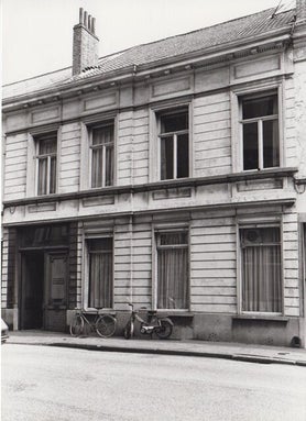 Breedhuis van drie traveeën en drie bouwlagen, met zadeldak (mechanische pannen). Volgens archiefstukken voorheen gedateerd 1714 en met centraal dakvenster boven de tweede bouwlaag, in 1861 aangepast tot een lijstgevel van drie bouwlagen. Borstweringen met geschilderde opschriften: "café St.Pierre" en "Kon. Maatsch. De Gentsche Schutters".