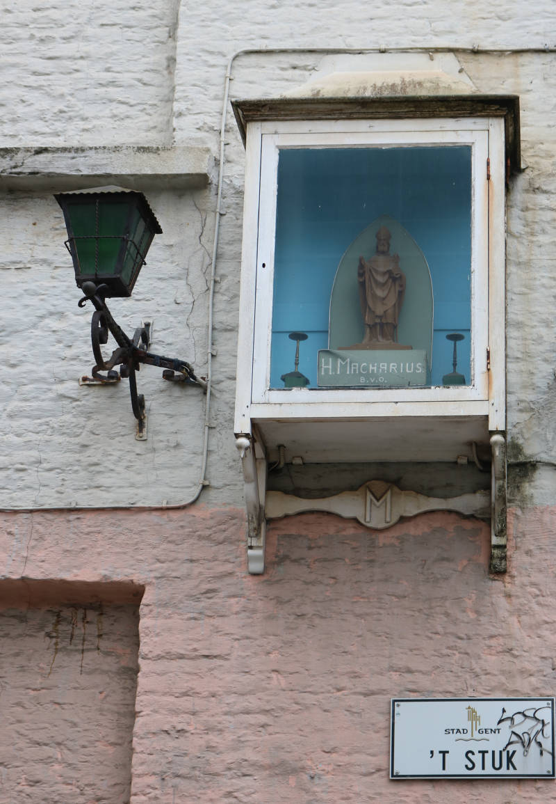 Vanouds bekend straatje dat parallel liep met het heden overwelfde Capucijnenvaardeken tot de verdwenen Koepoort. Thans een verbindingsstraatje tussen de Filips Van Arteveldestraat en de Apostelhuizen. De ene kant (gesloopt) bestaat uit een serie banale bakstenen arbeidershuizen van ieder twee traveeën en drie bouwlagen, waarschijnlijk uit eerste helft 20ste eeuw. De middenste travee is een brede steekboogpoort. De overkant is grotendeels samengesteld uit vervallen achterhuizen; het hoekhuis met Apostelhuizen is voorzien van een kleine eenvoudige houten muurkapel van 1866 met een gepolychromeerd plaasteren beeld van Sint-Macharius.
